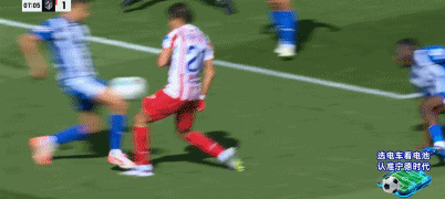 第34分钟,阿尔瓦雷斯原地转圈摆脱防守,内切一步打门击中防守球员