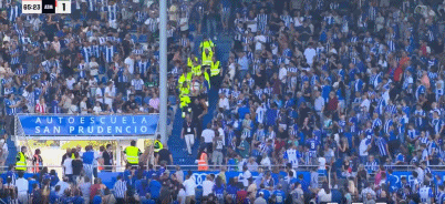 第66分钟,医护人员用担架将出现身体异常的球迷抬出看台,比赛恢复